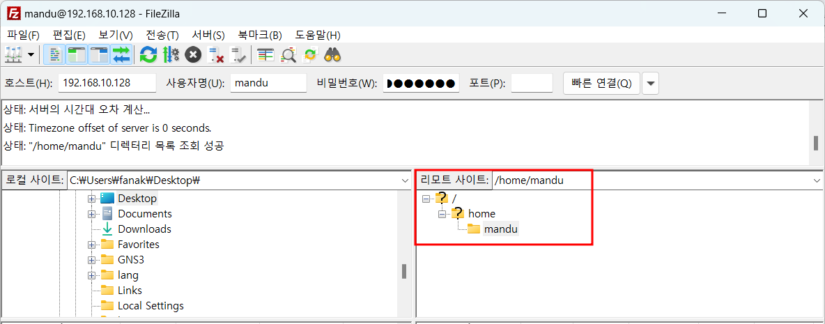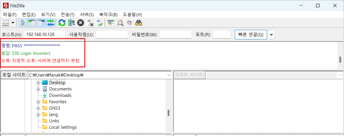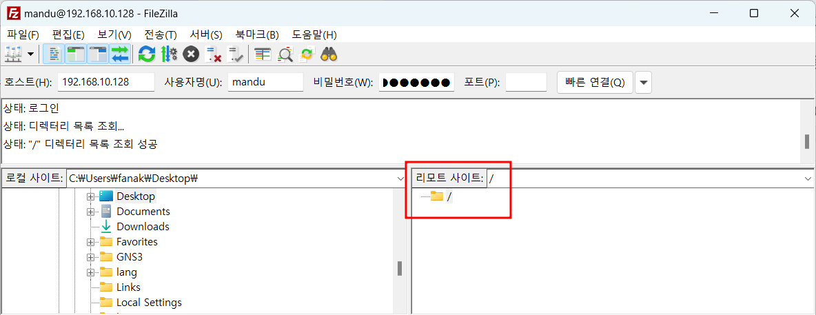 사용자명을 입력했지만, 원래 FTP 서버에 접속할땐 익명으로도 접속이 가능합니다